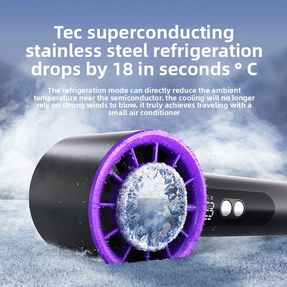 Stay cool anywhere with the powerful Hand Held Jet Fan, engineered with a high-performance brushless motor that delivers strong, smooth airflow in a compact handheld design. With 5 adjustable speed levels, this fan gives you full control—from a gentle breeze to a powerful jet stream of refrigerated cool air.